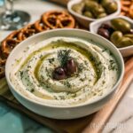 - Garnish and serve: Just before serving, top the dip with sliced green olives, a sprinkle of extra lemon zest, and some additional cracked black pepper for visual appeal and added flavor.