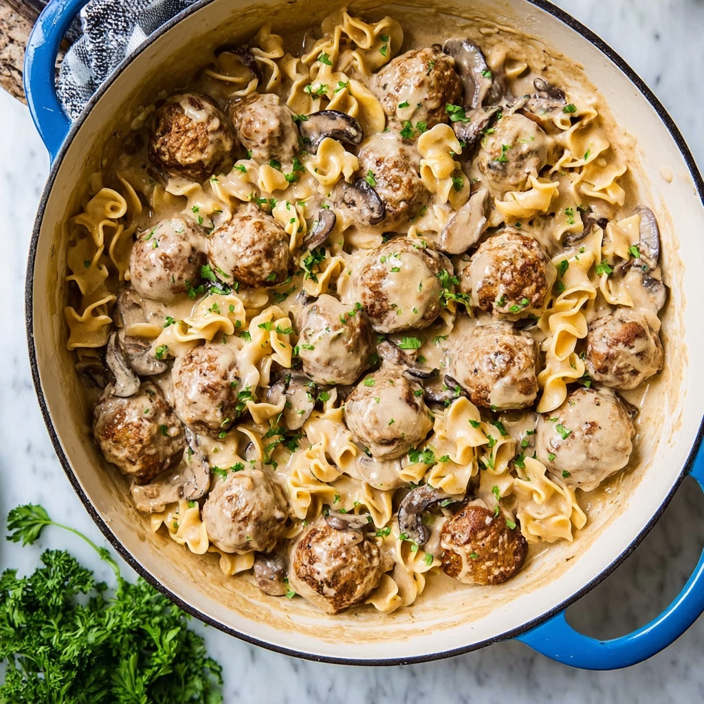 For a fun twist, try layering your Meatball Stroganoff Recipe in individual ramekins and topping with fresh herbs. It’s elegant for dinner parties or turning leftovers into a comforting lunch. Alternatively, serve it over mashed potatoes or creamy polenta instead of noodles for a different take on the classic.